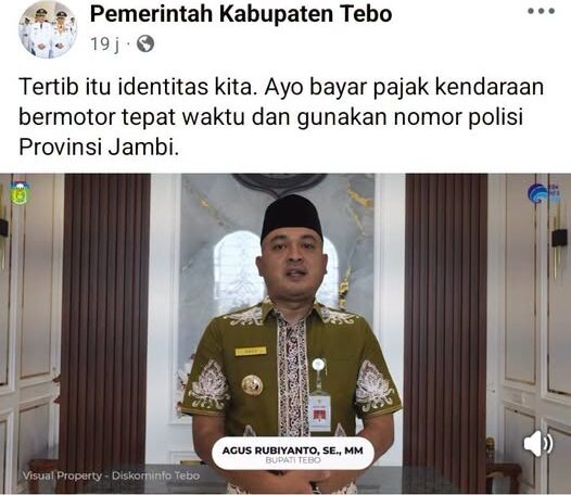 Pemayung.com, TEBO – Di tengah kepungan debu dan kubangan jalan rusak yang merata di hampir seluruh kecamatan, sebuah video singkat di jagat maya mendadak memicu bara amarah warga Kabupaten Tebo. Alih-alih membawa kabar soal pengaspalan, Bupati Tebo justru muncul dengan narasi yang dianggap “tuli” terhadap realitas lapangan: ajakan membayar pajak kendaraan tepat waktu.