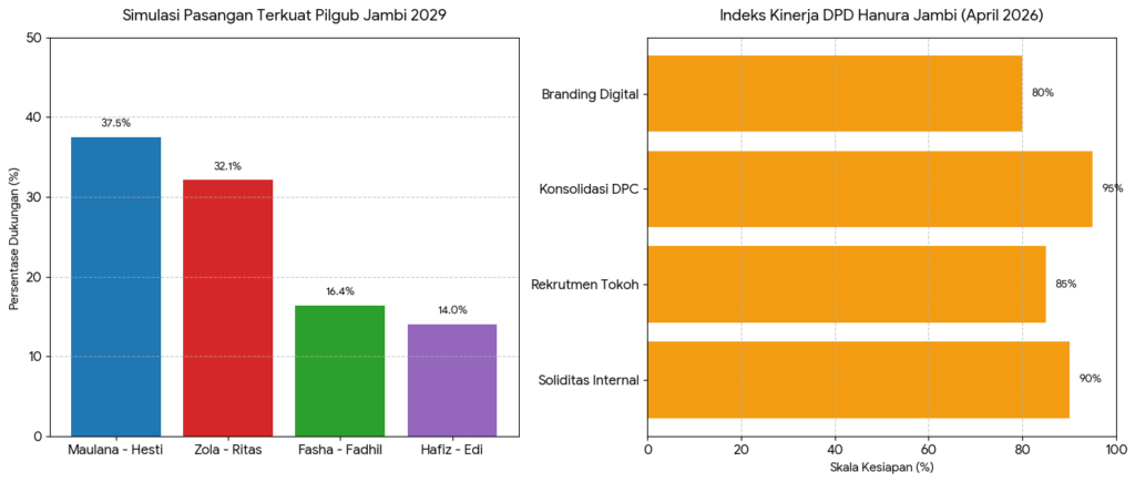 Posisi Strategis Menuju 2029Kondisi Hanura di bawah Ritas saat ini berada dalam fase konsolidasi total. Dukungan penuh dari wilayah kunci seperti DPC Kerinci menunjukkan bahwa soliditas internal sedang berada di titik tertinggi. Dalam bursa simulasi pasangan calon, nama Ritas sendiri mulai mencuat sebagai figur potensial, terutama setelah munculnya skenario duet Zola-Ritas yang dinilai mampu mengimbangi dominasi pasangan Maulana-Hesti Haris.