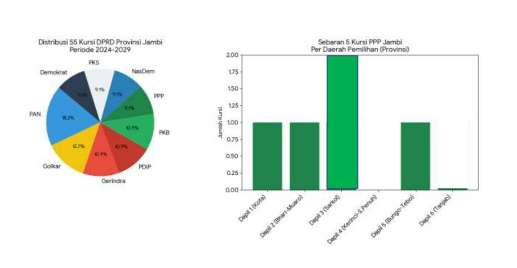 - Dominasi Daerah: Hasil Pemilu 2024 menunjukkan PPP “melejit” dan berhasil menguasai perolehan di 2 daerah di Jambi, yang menjadi basis suara signifikan bagi partai.