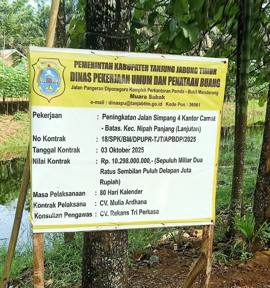 Hingga berita ini diterbitkan belum ada keterangan resmi dari Dinas PUPR Tanjab Timur. (Wandi)